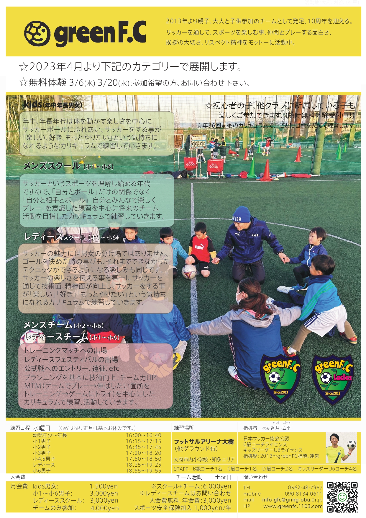 愛知県大府市で活動する親子(大人と子供)参加型のサッカーチーム 『green F.C』
